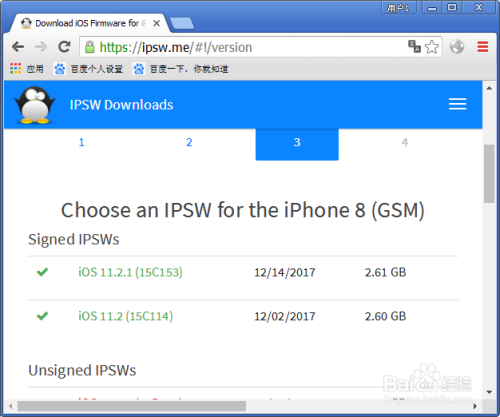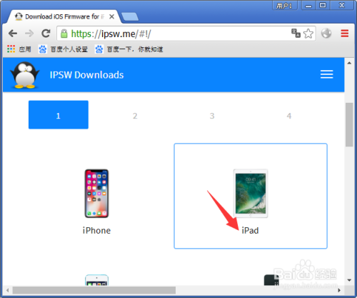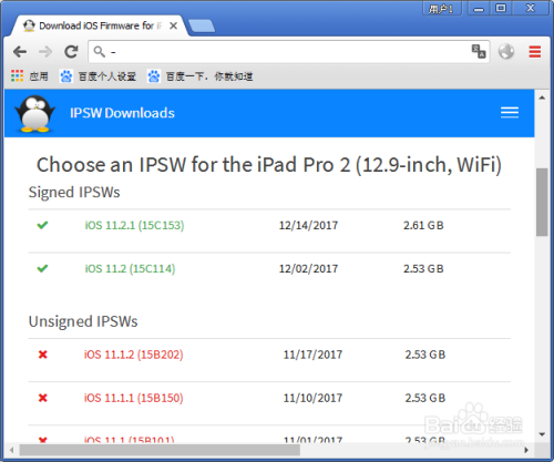 首先打开游览器输入以下地址ipsw.me,之后在页面中就会显示出Apple苹果设备栏目选项页面。