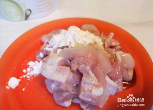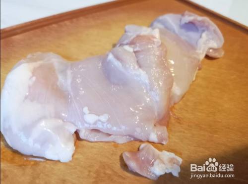 准备好两片没有皮的鸡腿肉,将鸡腿肉切成块;