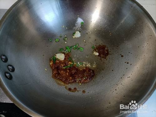 炒锅里倒入适量花生油,等油五成熟时,放入葱、姜、蒜爆香,再加入盐,味极鲜酱油和蚝油调味。