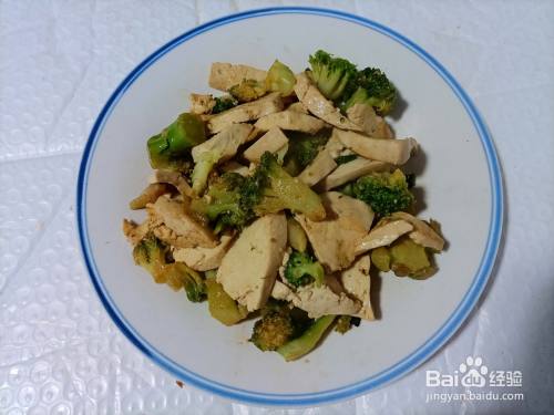 然后出锅装盘,这样一盘西兰花炒豆腐就做好了。