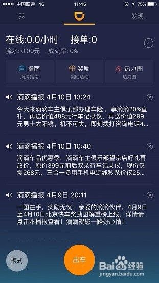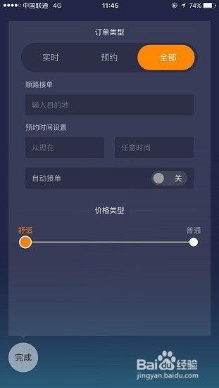 设置结束按完成,返回后点击出车,就开始接单了,需要保持成交率不能太低,收车按钮结束听单。