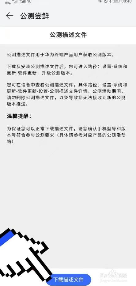 在出现页面点击下方的下载描述文件选项,之后就可以安装鸿蒙系统了