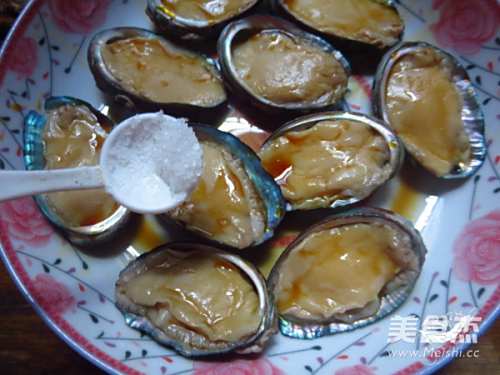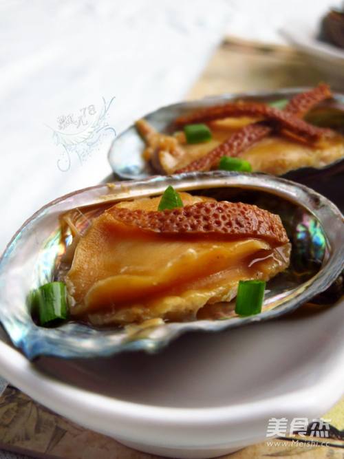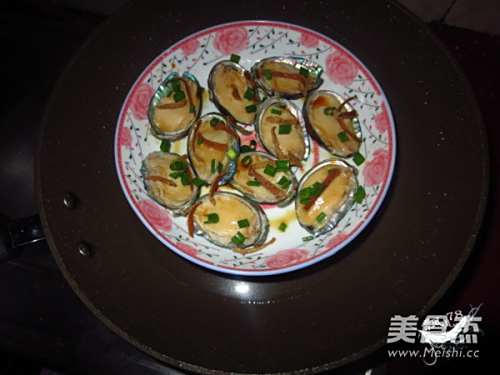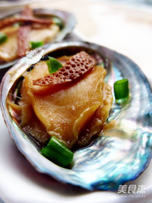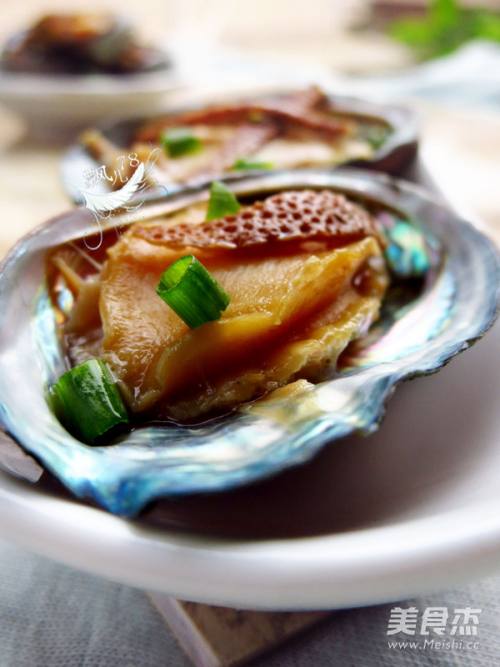 5清理好的鲍鱼放进鲍鱼壳里放在碟子里