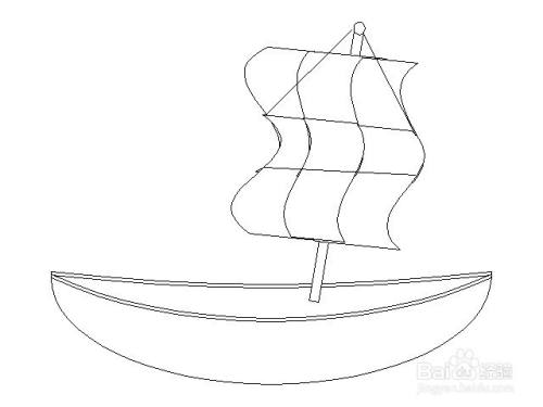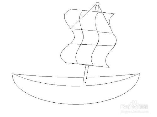最后再用弧线沿着船的上口描一下,帆船的简笔画就完成了。