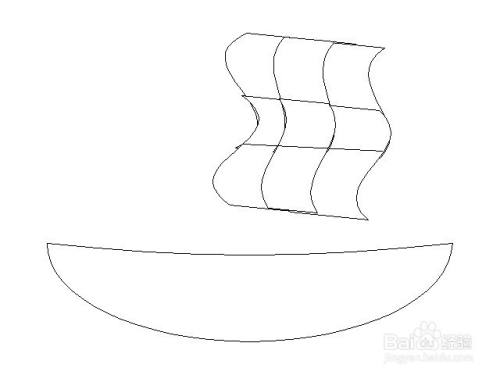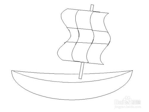 在船体的上方画出一个船帆,形状是一个扭曲的长方形,横着方向画直线,竖直方向画曲线,接近反写的“3”字形。