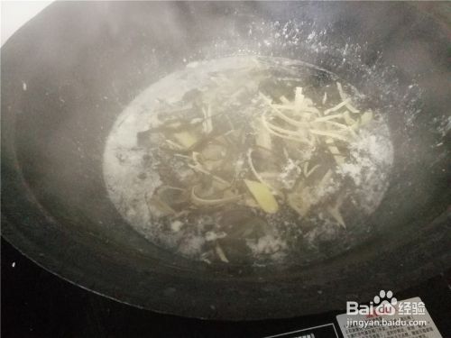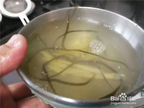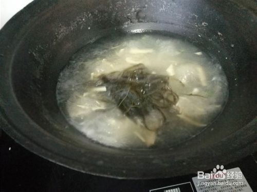 将干豆腐丝下入锅中炖煮,然后再下入海带丝继续炖煮