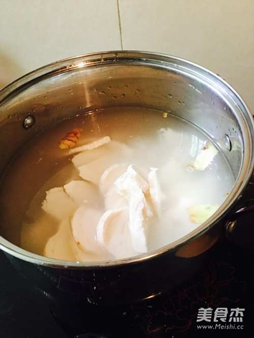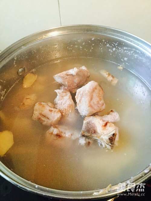 2汤锅内放入适量清水,烧开,加入粉葛,蜜枣