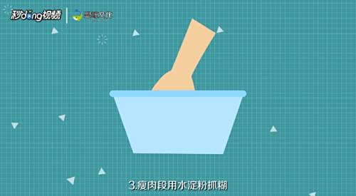 2瘦肉段用水淀粉抓糊,锅里热油,油六分热的时候像瘦肉段炸,用炸过瘦肉段的油继续炸茄块。