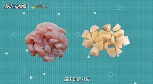 1将整块的瘦肉切小块,茄子切滚刀块,把料酒、盐、花椒粉倒入瘦肉盘里,搅拌入味,泡半碗淀粉。