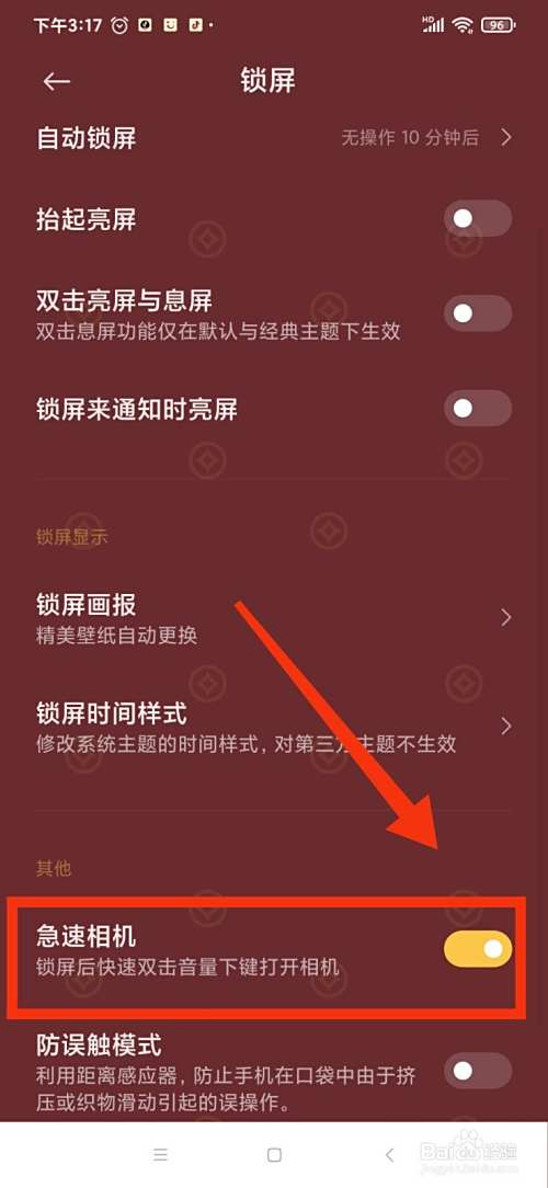 点击后,进入锁屏界面,点击开启【急速相机】即可。