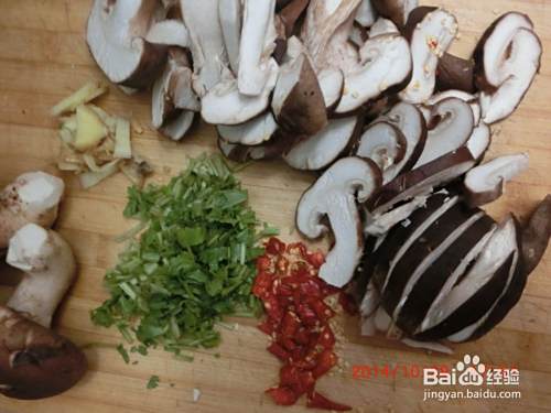 姜切片、香菇泡软切丝,辣椒丁切小块、芹菜香菜切末,豆腐切块。
