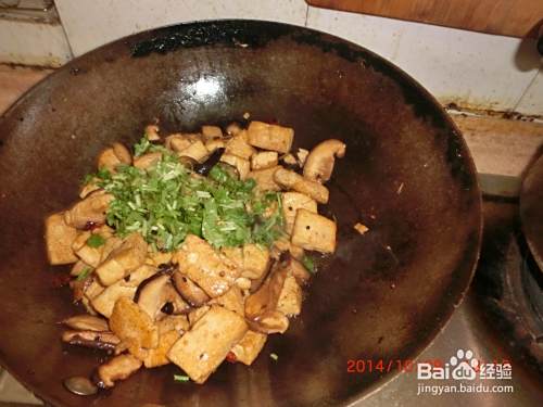 待汤汁收干时,加入香菜末与芹菜末略炒即可出锅。