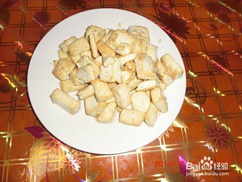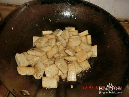 起油锅,将豆腐入锅,煎至金黄,盛出备用。