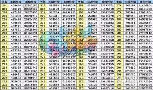 这个是1-300级的,具体经验表。