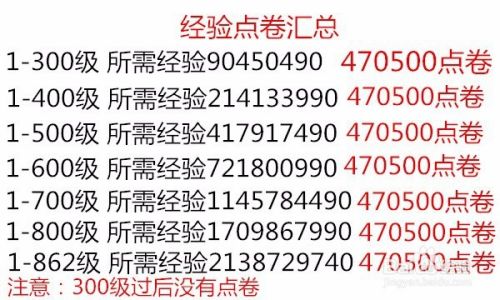 最后这个是1-300级总经验,1-400级总经验,1-500级总经验,1-600级总经验,1-700总经验,1-800级总经验,1-862级(1-满级)总经验。