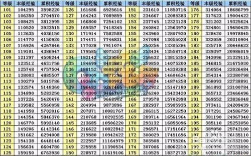 这个是1-200级的,具体经验表.