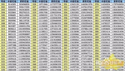 1-400级每级的具体经验都有