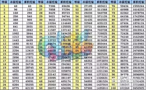 先说1-100级的,具体经验表。