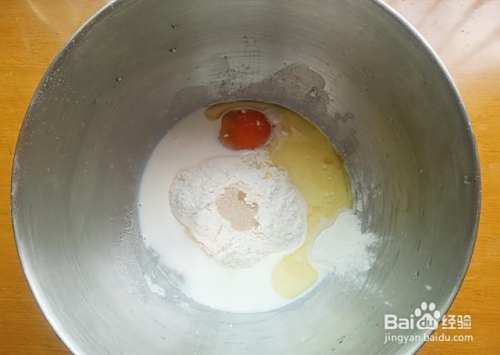 将所有食材倒入大盆子内,注意酵母不要和盐有直接接触,容易影响酵母活性,另外酵母必须要用耐高糖酵母,因为本配方含糖量较高,市面上普通做包子馒头用的酵母是不行的