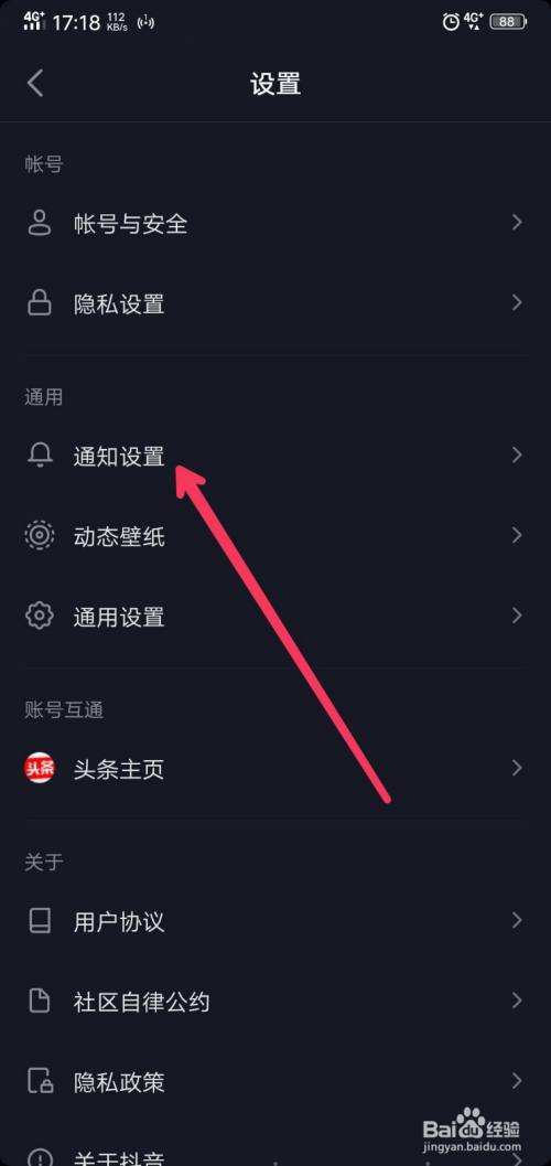 点击通知设置。