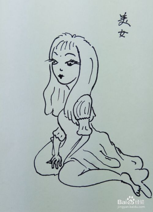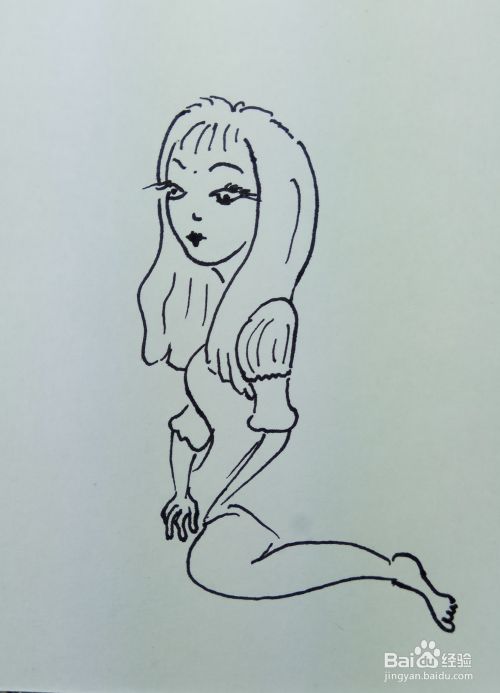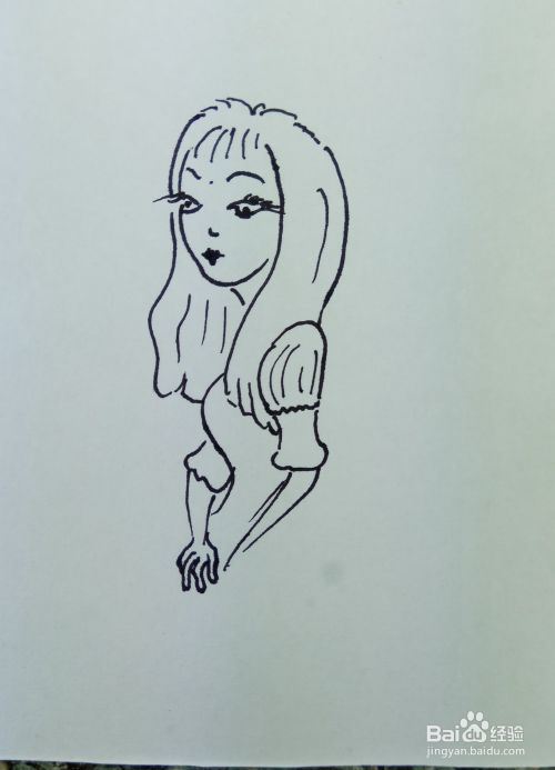 用曲线和弧线画出她的眉毛和漂亮的头发,她长发飘飘,煞是漂亮。
