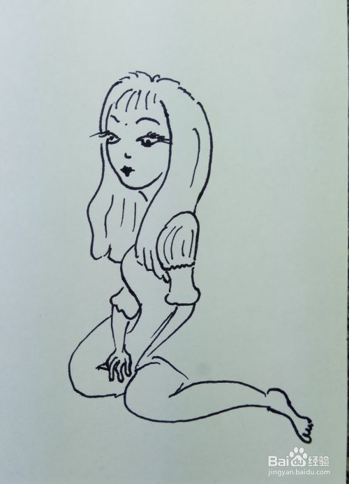 画出小女孩右边的腿部,她正跪在地上玩耍呢。
