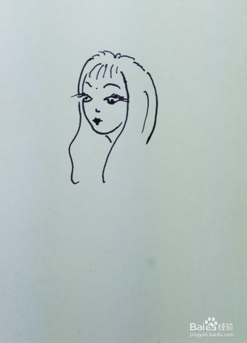在白纸上用线条和曲线画出一个小姑娘的头部轮廓,并画出她的眼睛,鼻子和嘴巴部分。