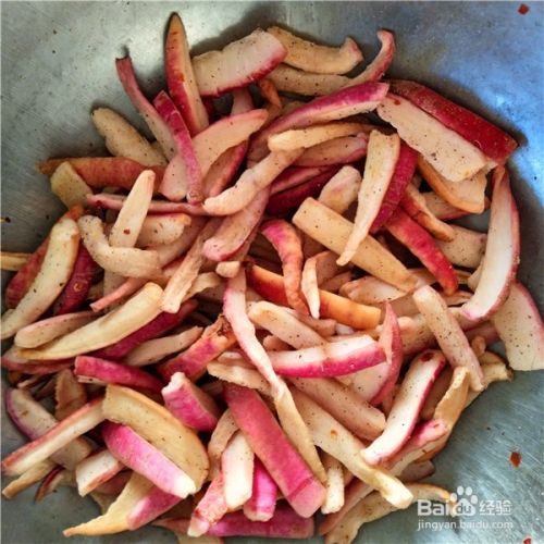 秋天的晴朗天气里晾晒上一天,萝卜条子都皱缩了。加上几勺盐和少许的辣椒粉,充分搅拌均匀腌上一个晚上。
