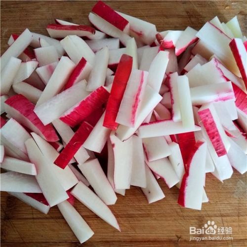 萝卜全部切成小条状,大小可以根据个人的喜好来调节。
