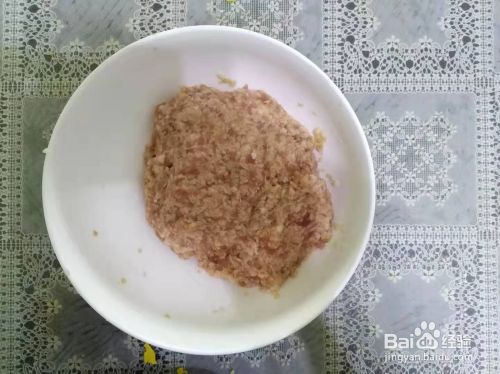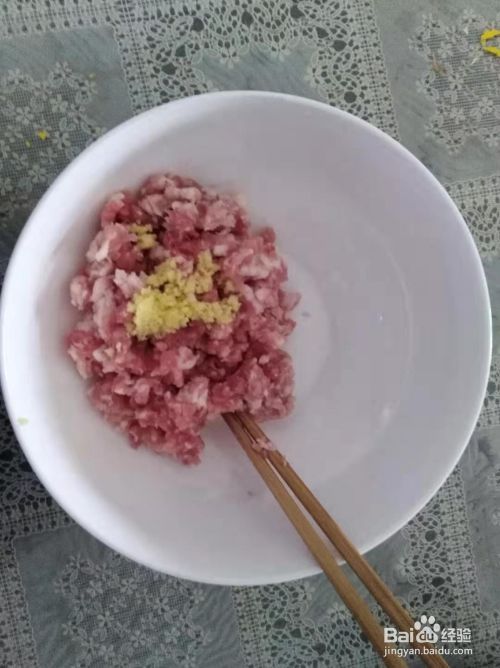 五花肉剁成馅,葱、姜剁碎,放肉馅里。