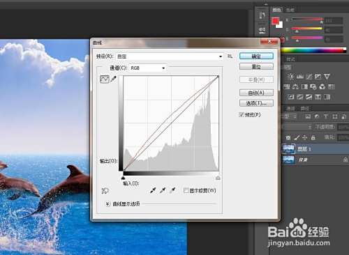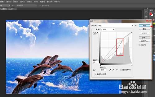 第六步:在曲线对话框中,按住鼠标左键拖动至想要的效果,单击“确定”按钮。
