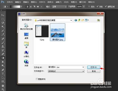 第二步:在打开对话框中,选择并打开一张需要使用曲线功能的图片。