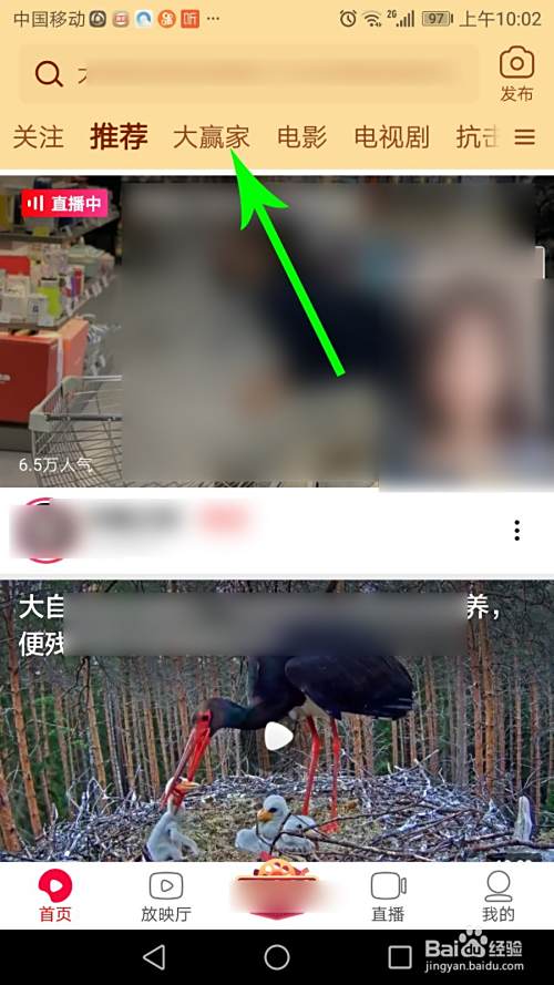 想要在电视上观看大赢家时,打开手机点击“西瓜视频”,然后点击“大赢家”。