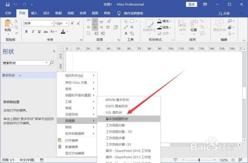 点击【更多形状】-【流程图】-【基本流程图形状】。