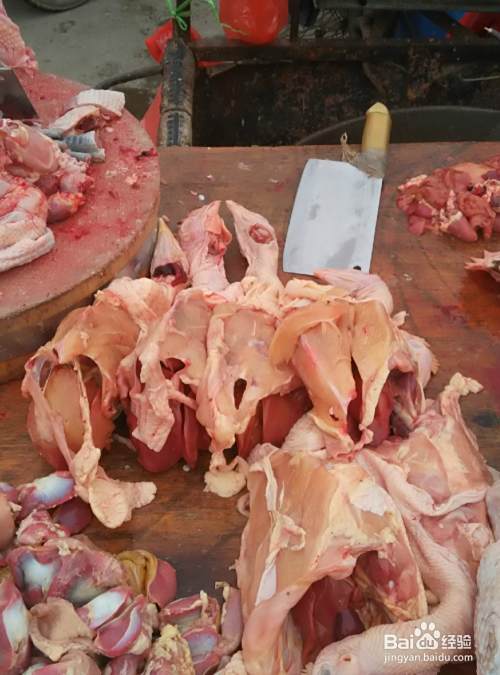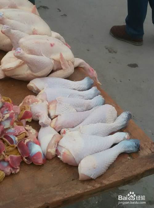 很多整鸡也会少一些部件,比如鸡爪,商贩会把好卖的部件提前拆解下来出售。