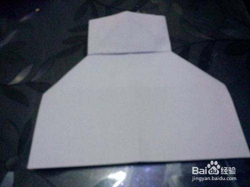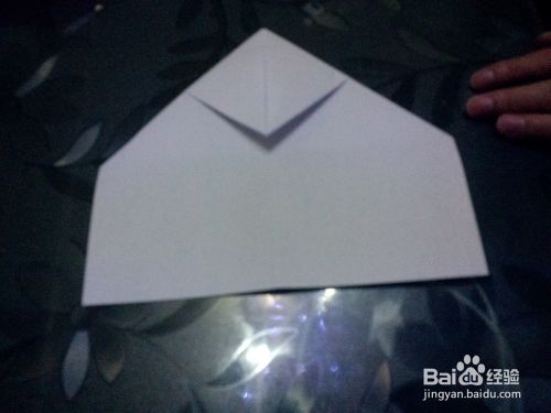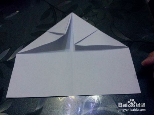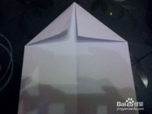将对折的长方形恢复成原样,沿中心线对折短边的两个角成三角形。