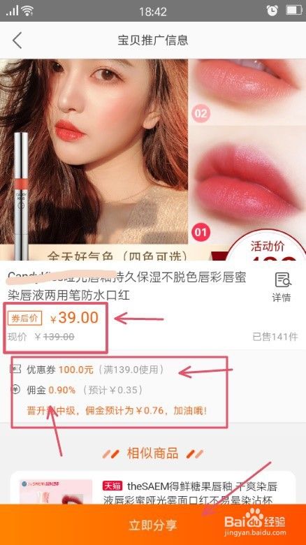 该商品会显示有无优惠券,和是否有佣金,点击分享赚钱,二者加起来,就是你能享受到的优惠