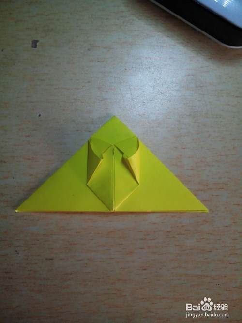 将三角形的两角向上折。