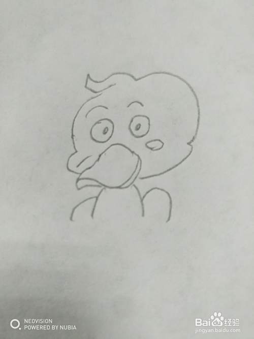 第三步,把小鸭子的嘴巴以及脸画完整。