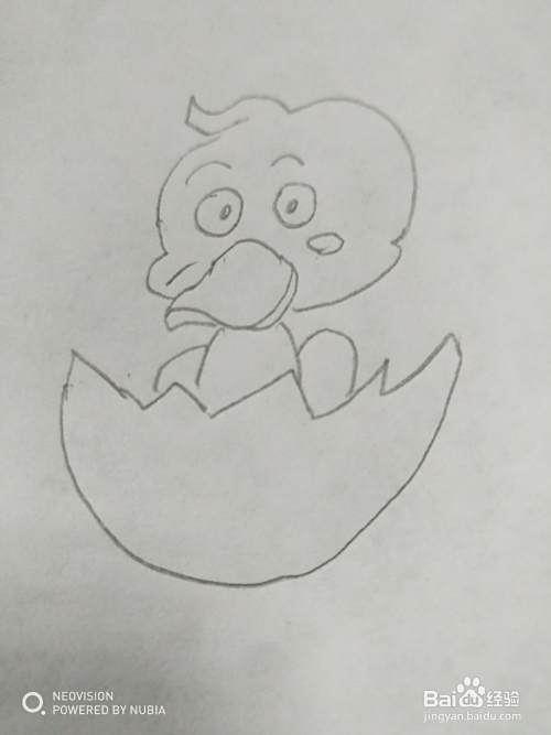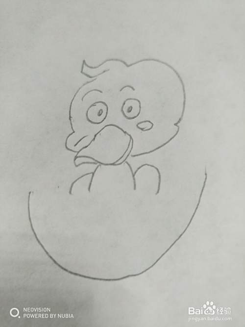 第六步,最后把小鸭子和曲线中间把蛋壳部分画完整。