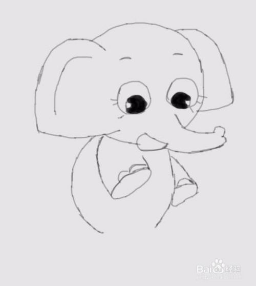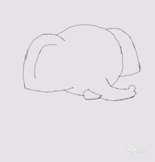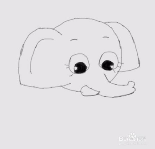 再在鼻子和嘴巴的基础上画出小象的头部,然后在头部上画出小象的两只大耳朵,如图所示: