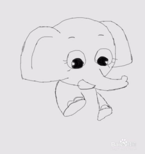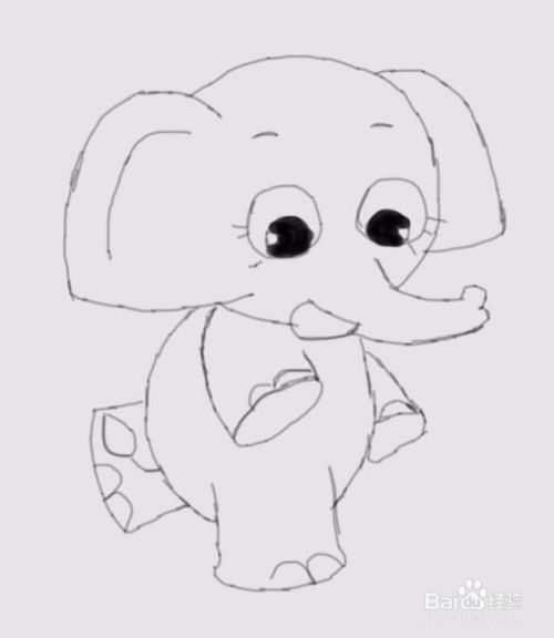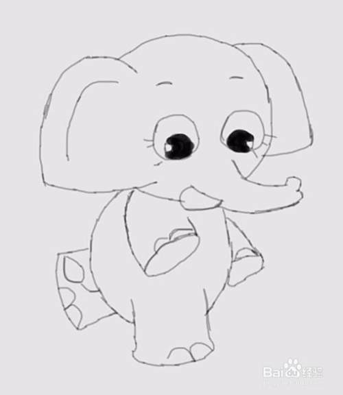 在身体下面再画出小象的两条腿,通过以上的操作我们的卡通小象就绘制好了,如图所示: