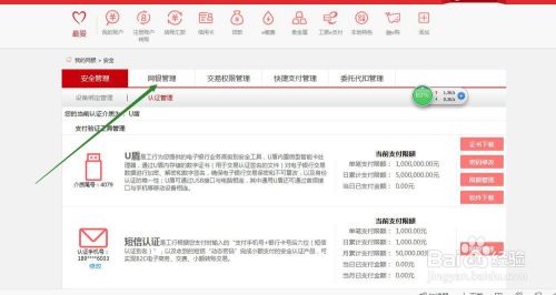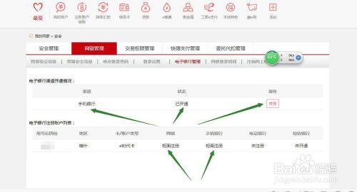 5、进入【安全】后,找到【网银管理】,点击进入。