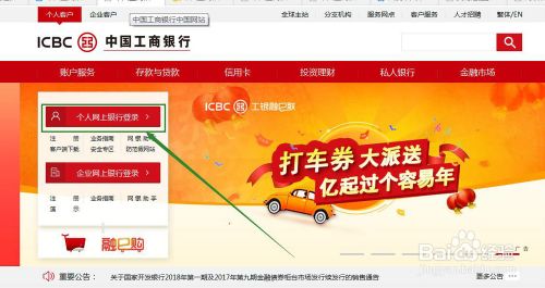 2、进入工行的主页面后,找到【个人网上银行登陆】点击进入。