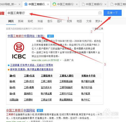 1、百度首页输入中国工商银行,点击进入中国工商银行官网。如下图。