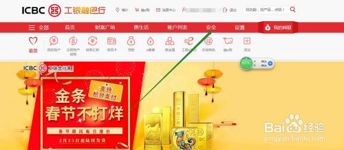 4、这时,进入【个人网上银行登陆】找到【安全】点击进入。