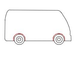 而后,用横线连接轮子,添加底盘线,并在左右两边往上勾画车杠边线。
