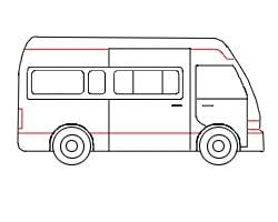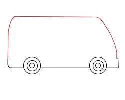 接着在两边端点往上勾画线条,勾画出车的大致轮廓。而后在车里丧父添加弧线。