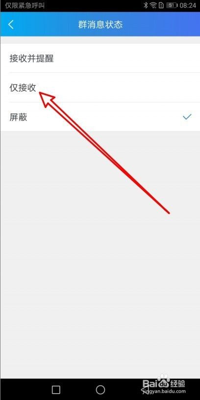 然后在打开的群消息状态页面中,我们找到“仅接收”的菜单项。