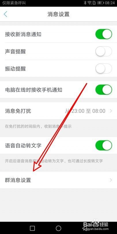 然后在打开的消息设置页面中,我们点击下面的“群消息设置”的菜单项。